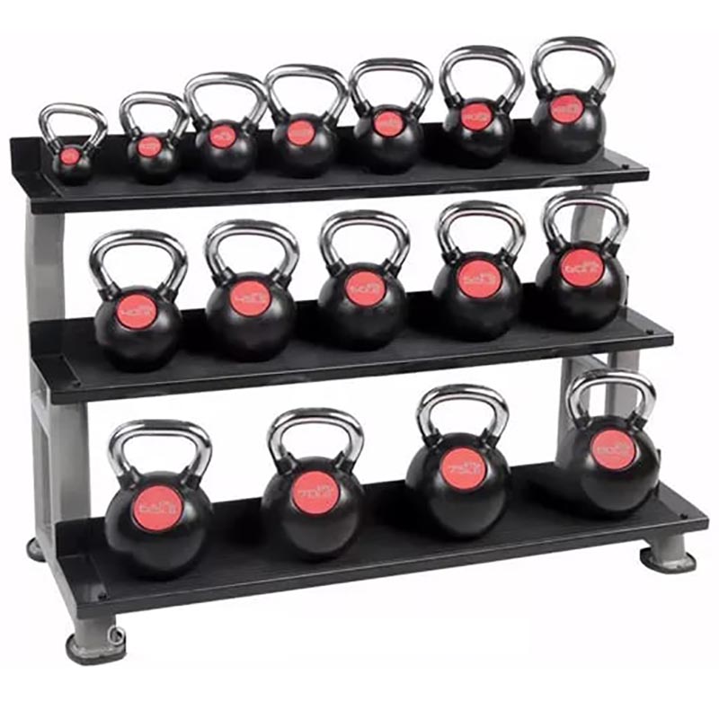 Noge su opremljene posebnim gumenim jastučićima kako bi se spriječilo oštećenje poda. Okvir od izdržljivog čelika osigurava dugotrajnu upotrebu i sigurno skladištenje kettlebella i premazan je s dva sloja antikorozivne zaštitne boje u prahu nanesene elektrostatičkim postupkom.